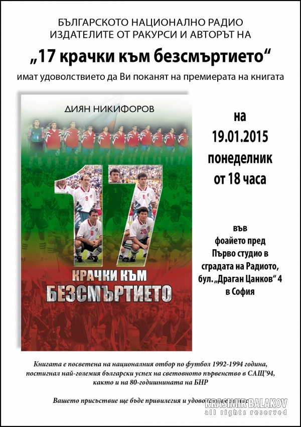 Представянето на вълнуващия разказ на журналиста от БНР Диян Никифоров за най-грандиозния успех в историята на българския футбол в САЩ през 1994 година, се състоя във фоайето пред Първо студио на Българското национално радио.