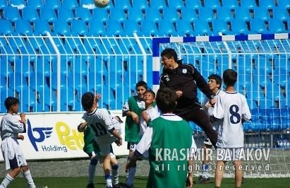 Красимир Балъков проведе днес демонстративна тренировка с възпитаници на SOS детски селища в България. Мениджърът на „Черноморец - Бургас" превъзмогна умората от драматичния мач предния ден със „Славия" и се лиши от сън и почивка, за да бъде рано сутринта на стадион „Лазур".
