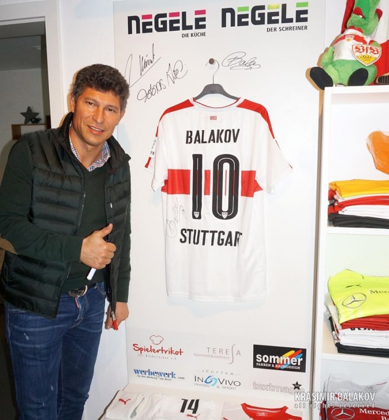 Легендата на българския национален отбор, Спортинг Лисабон и Щутгарт Красимир Балъков, дари своя футболна фланелка от екипа на Щутгарт за благотворителен търг в Германия, който набира средства за деца в неравностойно положение. Магическият халф сложи автограф върху своя екип и позира до него.
