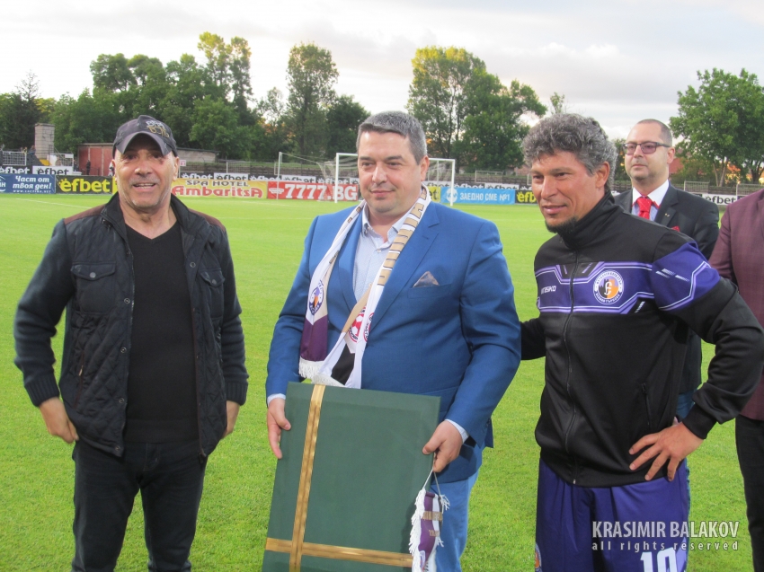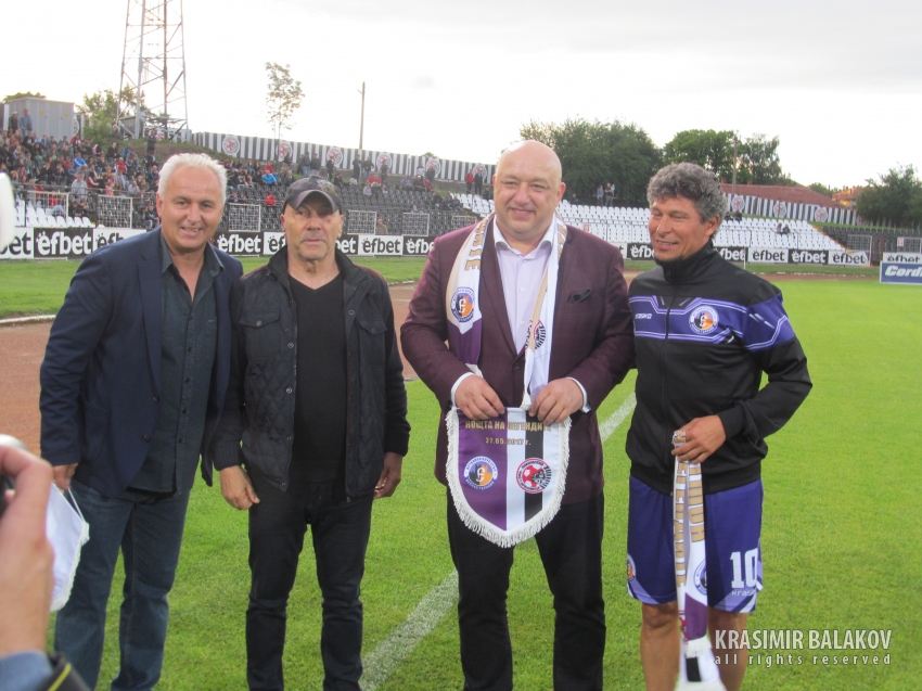 Преди това министърът на спорта Красен Кралев, символично преряза лентата на стадиона, където преди време официални мачове е играл и националния тим на България. Кралев връчи награди и възпоменателни плакети на много от участниците в мача, а зрителите по трибуните аплодираха своите любимци, донесли им много радост преди години. Двубоят между двата отбора не излъчи победител, но майсторските изпълнения на много от участниците ще се помнят.