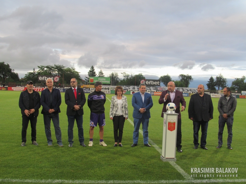 Плеймейкърът на златното поколение български футболисти Красимир Балъков взе участие в официалното пткриване на обновения стадион в Горна Оряховица. След близо 28 години Балъков отново онлече виолетовия екип на своя роден клуб "Етър" и изведе с капитанската лента отбора си в мача на легендите срещу "Локомотив" Горна Оряховица.