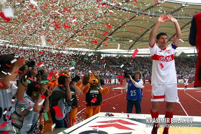 - Красимир Балъков, на 24 май преди 20 години бях на стадиона в Щутгарт. Вкарахте гол от дузпа за крайното 2:0 срещу “Волфсбург” в последния си официален мач. Наложи се да изчакате края на двубоя между “Борусия” и “Кьолн” в Дортмунд, който завърши 1:1. Това изкачи “Щутгарт” на второто място в класирането и го класира директно в групите на Шампионската лига.