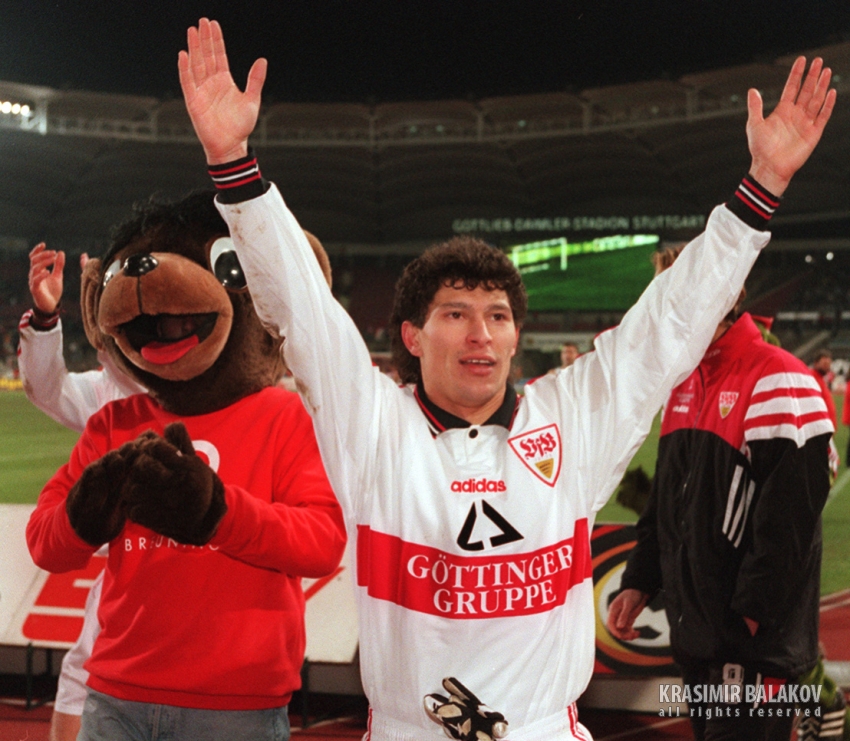 - Когато го подписах, нямаше интерес от "Байерн". След напускането на Джоване Елбер и Фреди Бобич пък "Щутгарт" ми предложи въпросния контракт. Бях останал само аз от магическия триъгълник. В ръководството на клуба знаеха, че ако ме бяха пуснали да си тръгна, недоволството на феновете щеше да бъде много голямо. Затова решиха да направят всичко, за да остана. Президентът Майер-Форфелдер явно ме е преценил като човек, за да ми предложи такъв договор. Знаеше, че няма да играя до 45 г., а когато му дойде времето сам ще се откажа. Така и стана. Останах после 2 г. като помощник в щаба на "Щутгарт", което също влизаше в договорката.